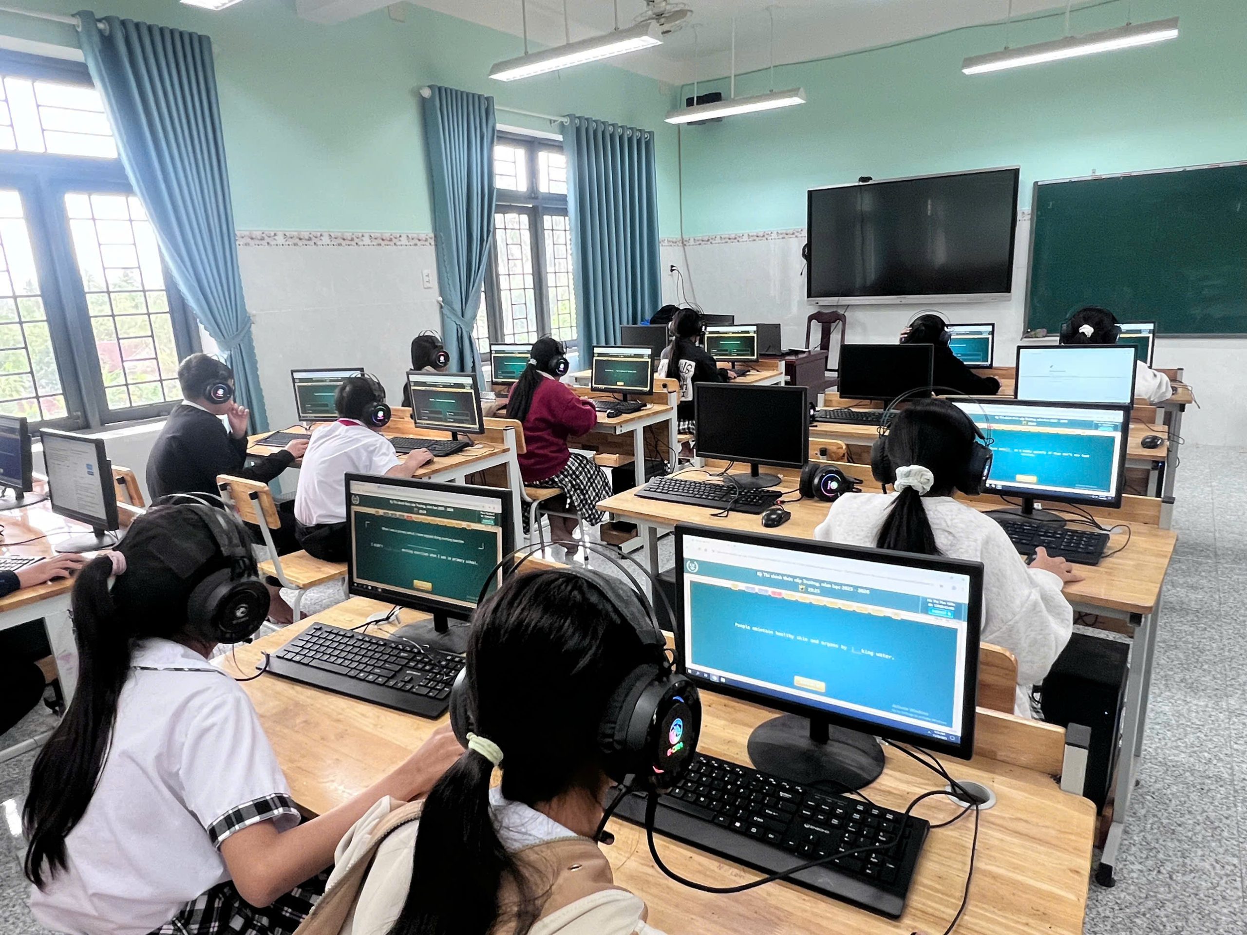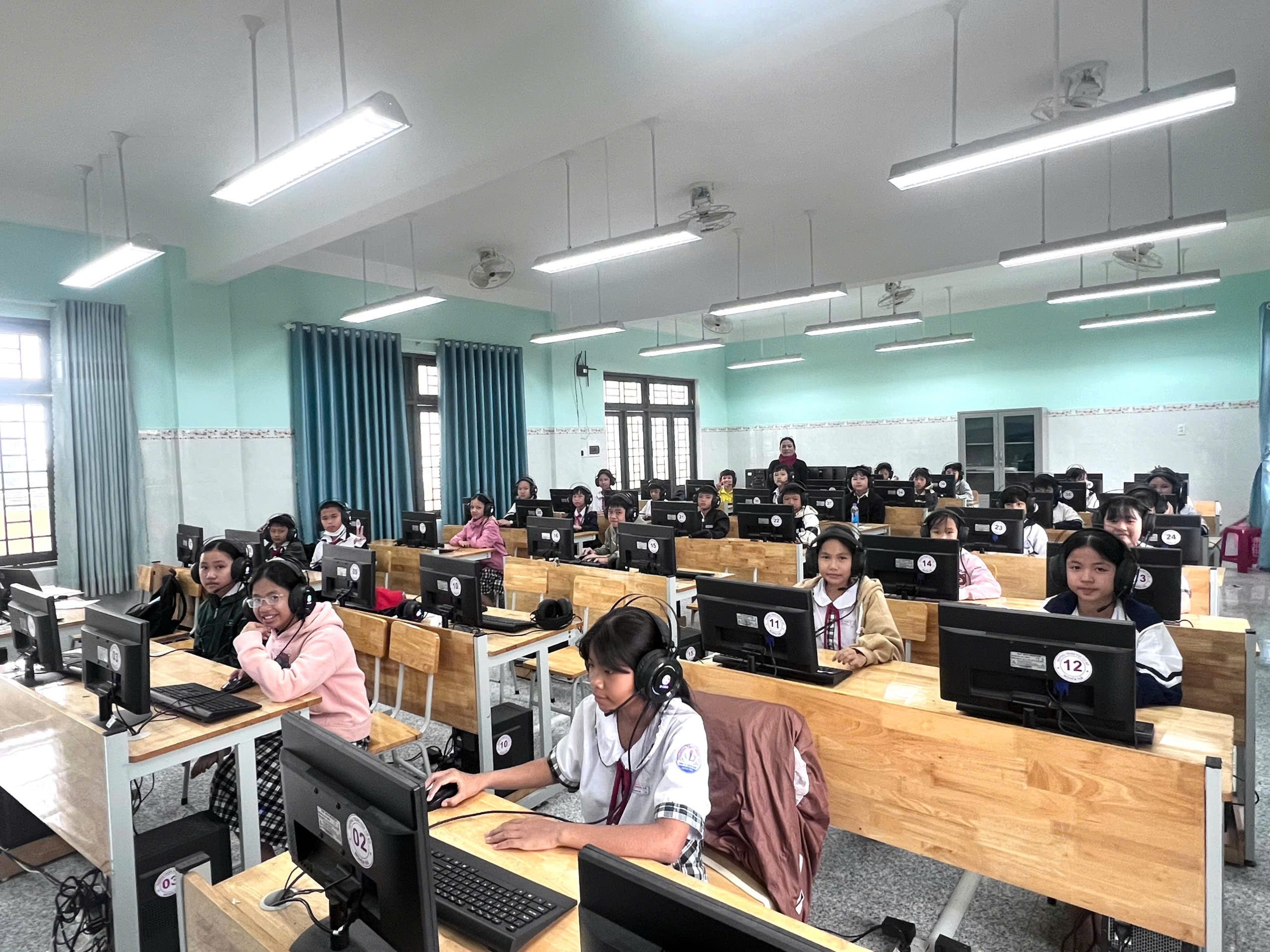 Trong ngày thi chính thức (28/11), không khí tại các phòng máy vô cùng nghiêm túc nhưng cũng không kém phần háo hức. Các em học sinh khối 6, biểu lộ sự hồi hộp xen lẫn quyết tâm, nhiều em chia sẻ rằng đây là trải nghiệm mới, giúp các em biết thêm nhiều dạng bài tiếng Anh thú vị. Đối với khối 7, 8 và 9, các em đã có kinh nghiệm từ những mùa thi trước nên biết cách bình tĩnh trước áp lực thời gian và tốc độ.