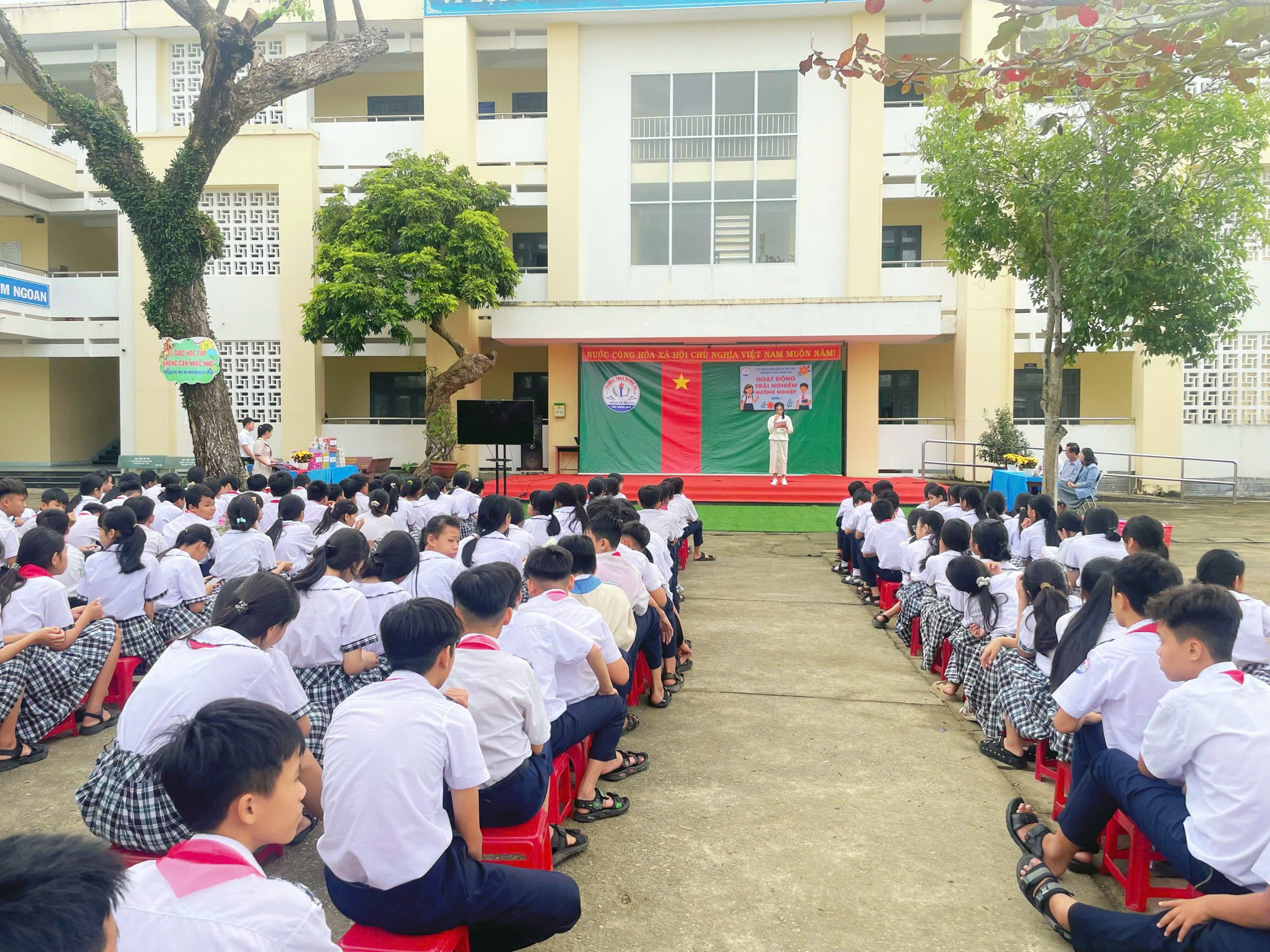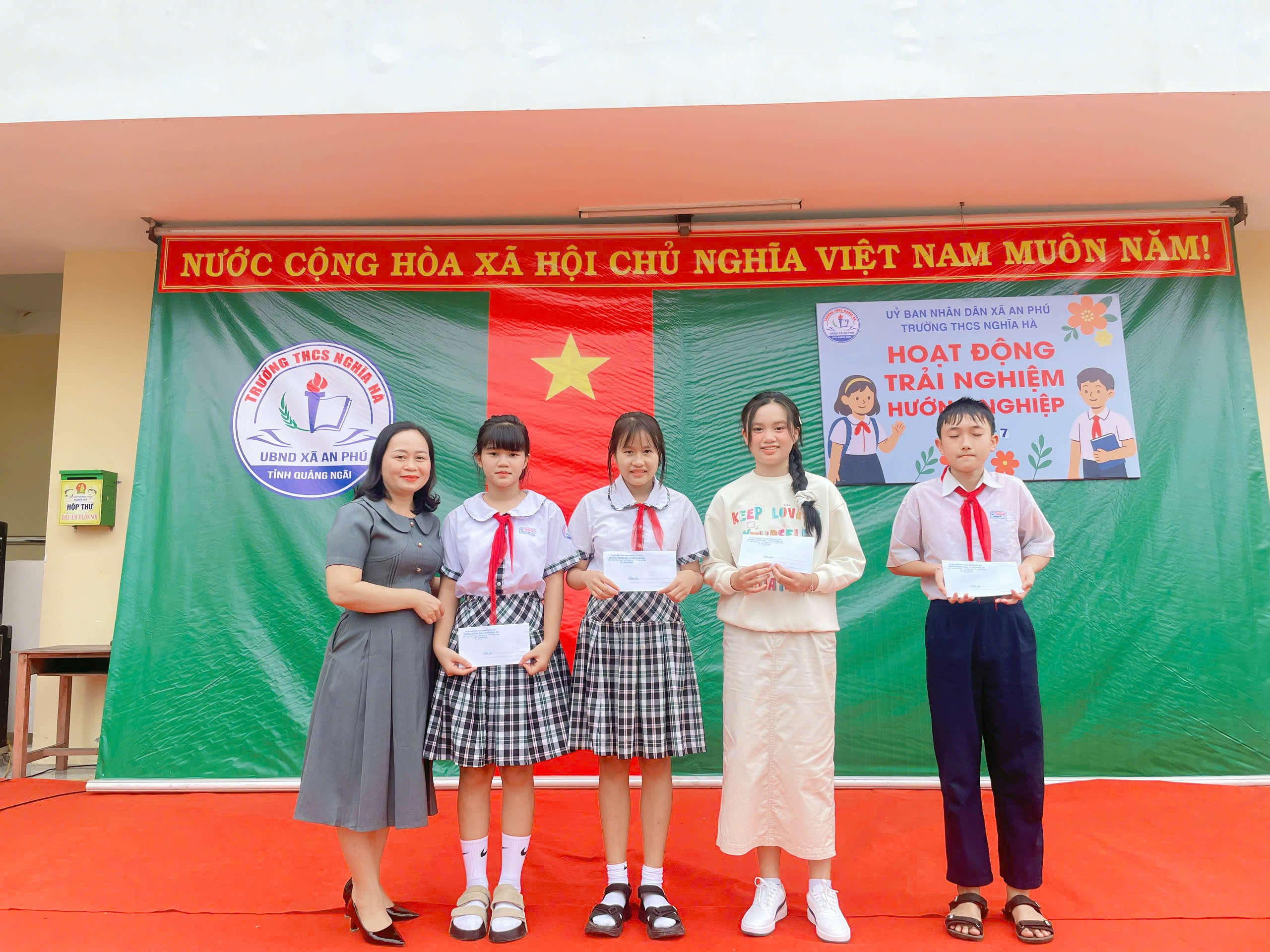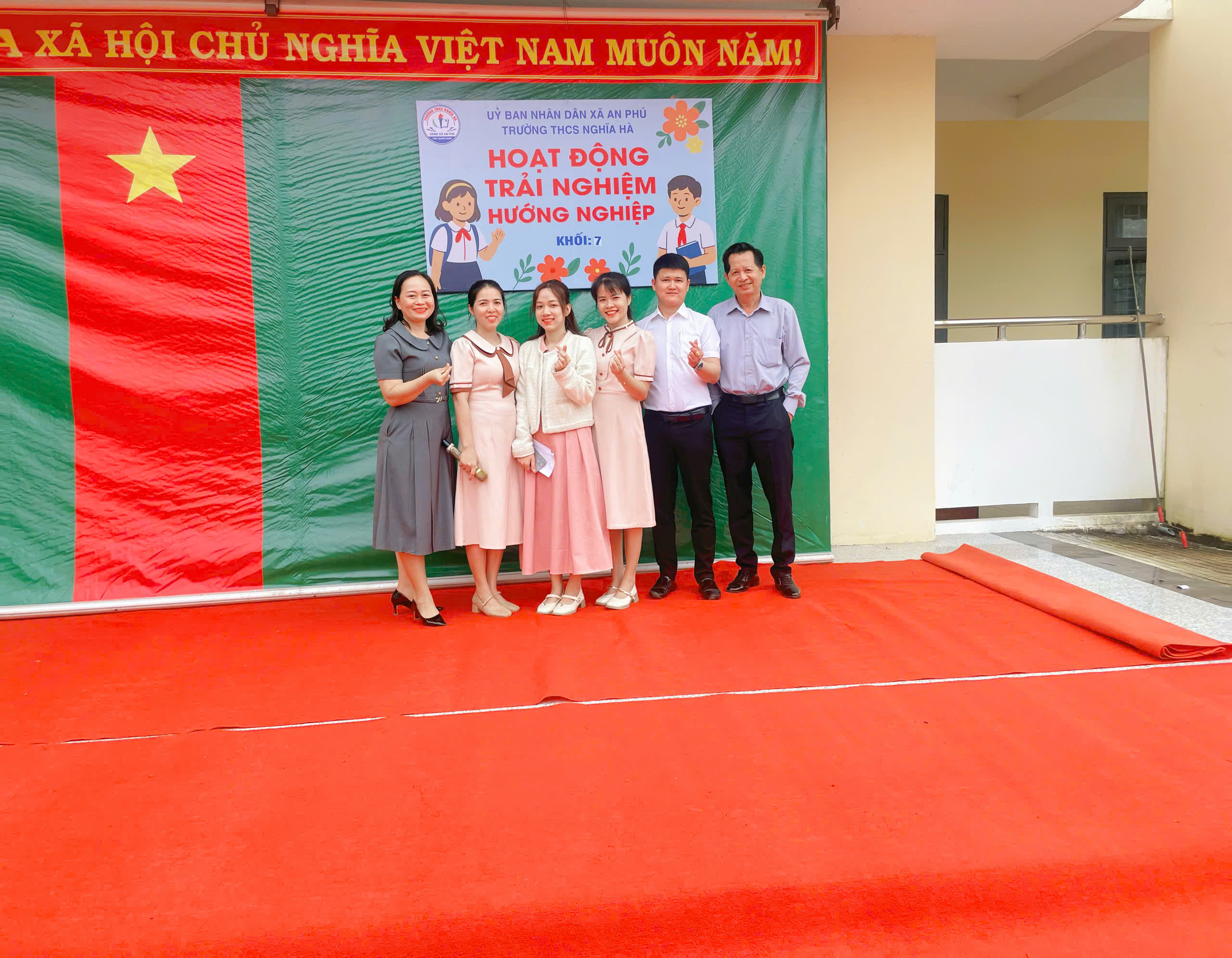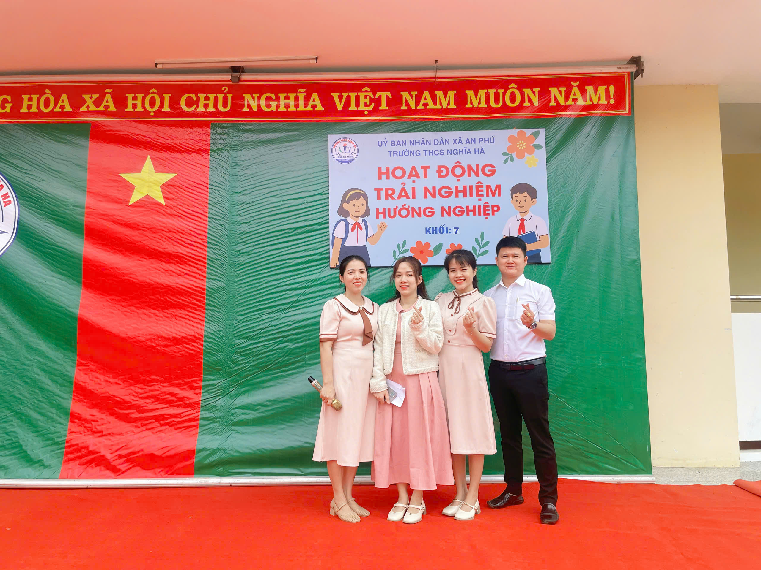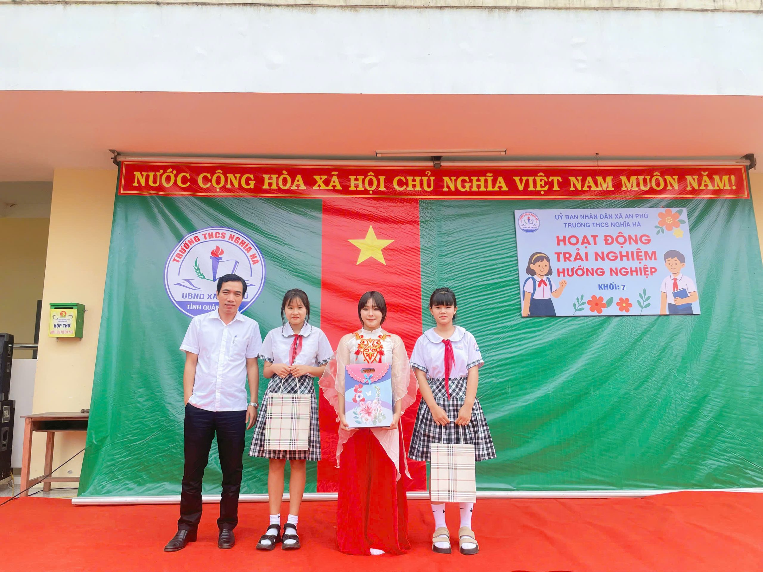 Sáng thứ Bảy, ngày 6/12/2025, tại sân trường THCS Nghĩa Hà, tiết Hoạt động trải nghiệm – Sinh hoạt dưới cờ khối 7 đã được tổ chức trong không khí trang trọng nhưng không kém phần sôi nổi. Đến với tiết hoạt động trải nghiệm của khối 7 vinh dự đón tiếp thầy Trần Công Hùng – Bí thư Chi bộ, Hiệu trưởng nhà trường; Cô Nguyễn Thị Thanh Nga – Phó bí thư Chi bộ, Phó Hiệu trưởng nhà trường, cùng 4 giáo viên chủ nhiệm và hơn 170 em học sinh khối 7. Chương trình được xây dựng công phu, sáng tạo, kết hợp hài hòa giữa vui chơi, trải nghiệm và giáo dục giá trị sống, để lại nhiều ấn tượng sâu sắc trong lòng thầy cô và các em học sinh.
